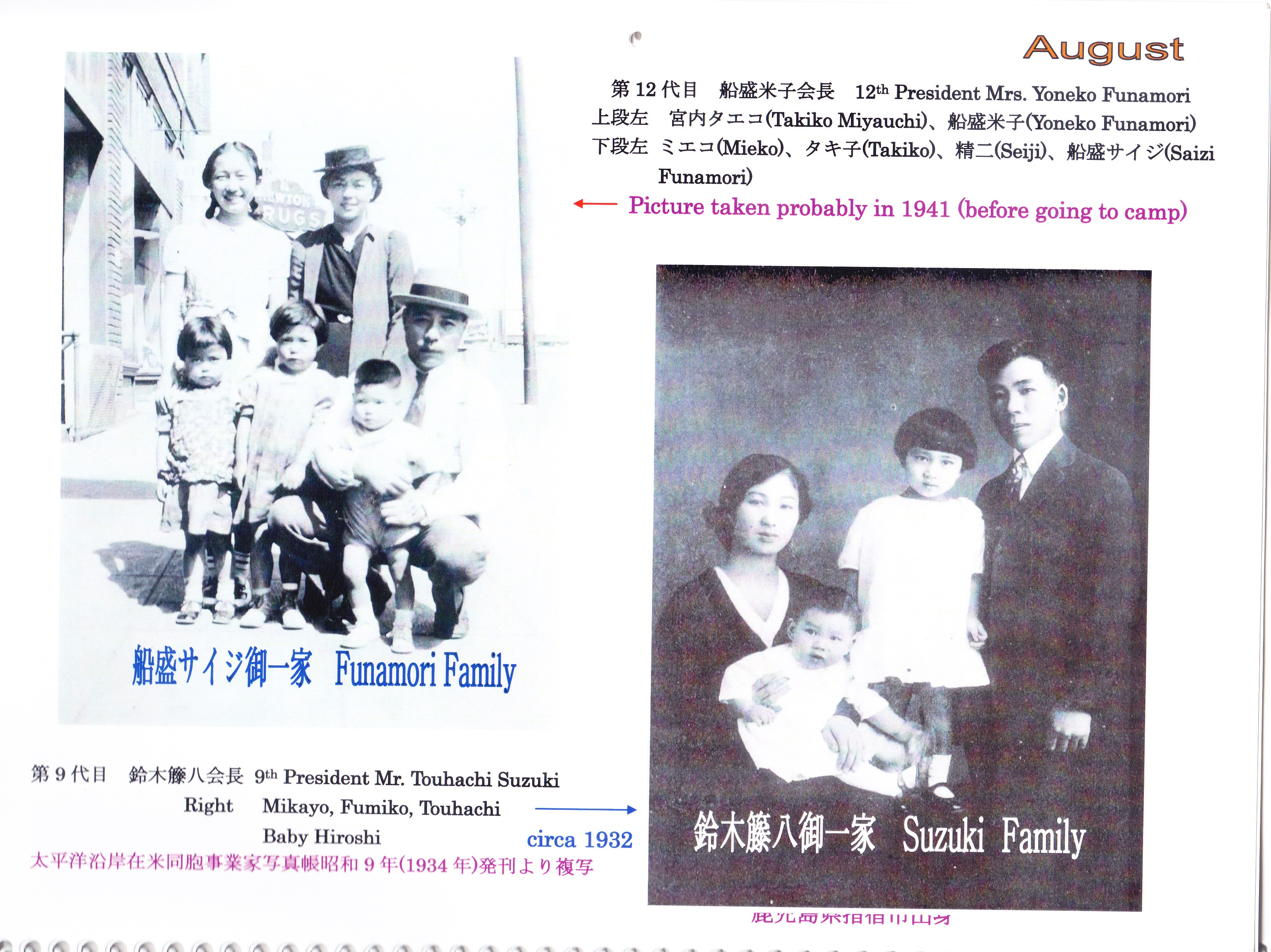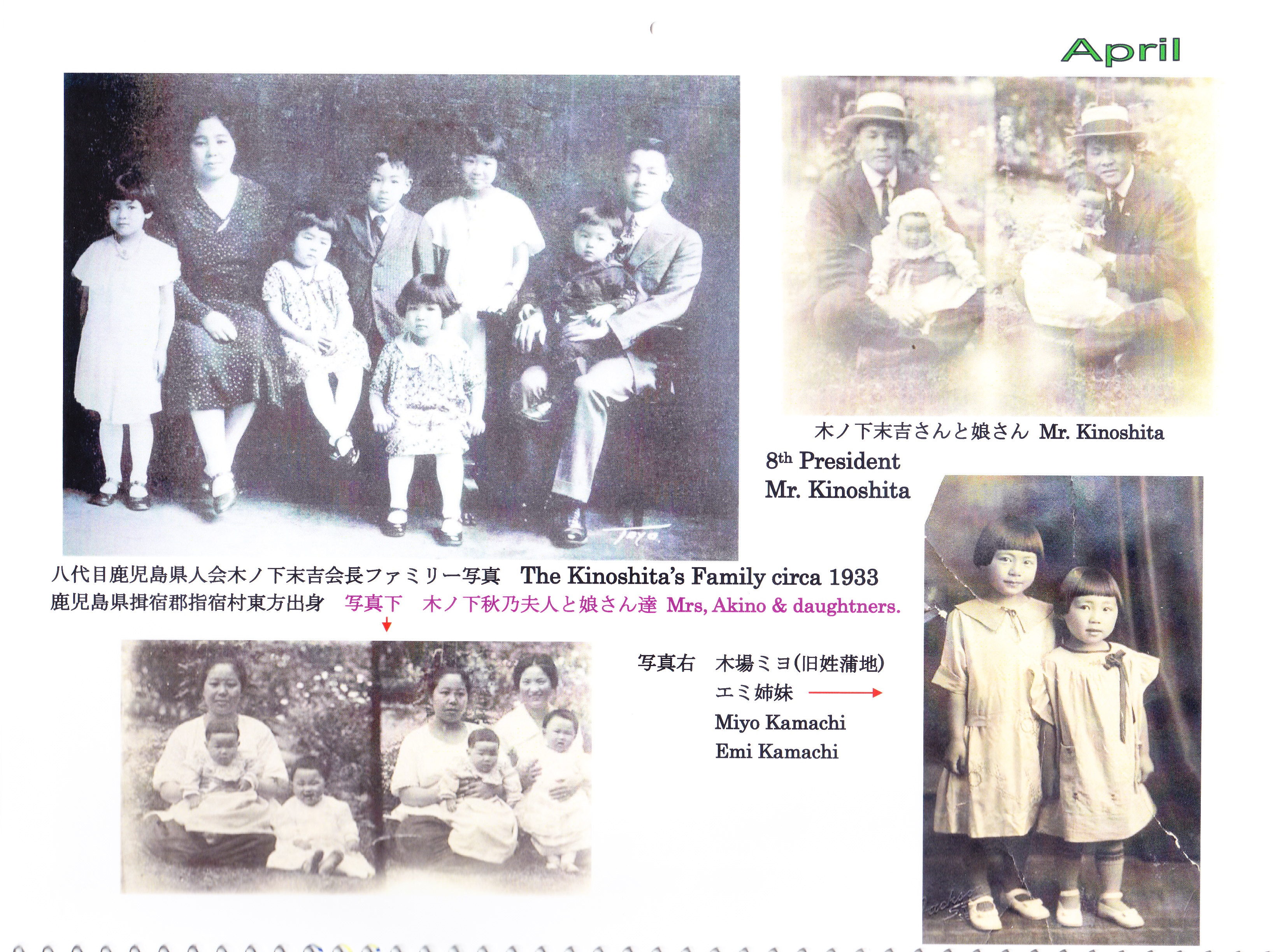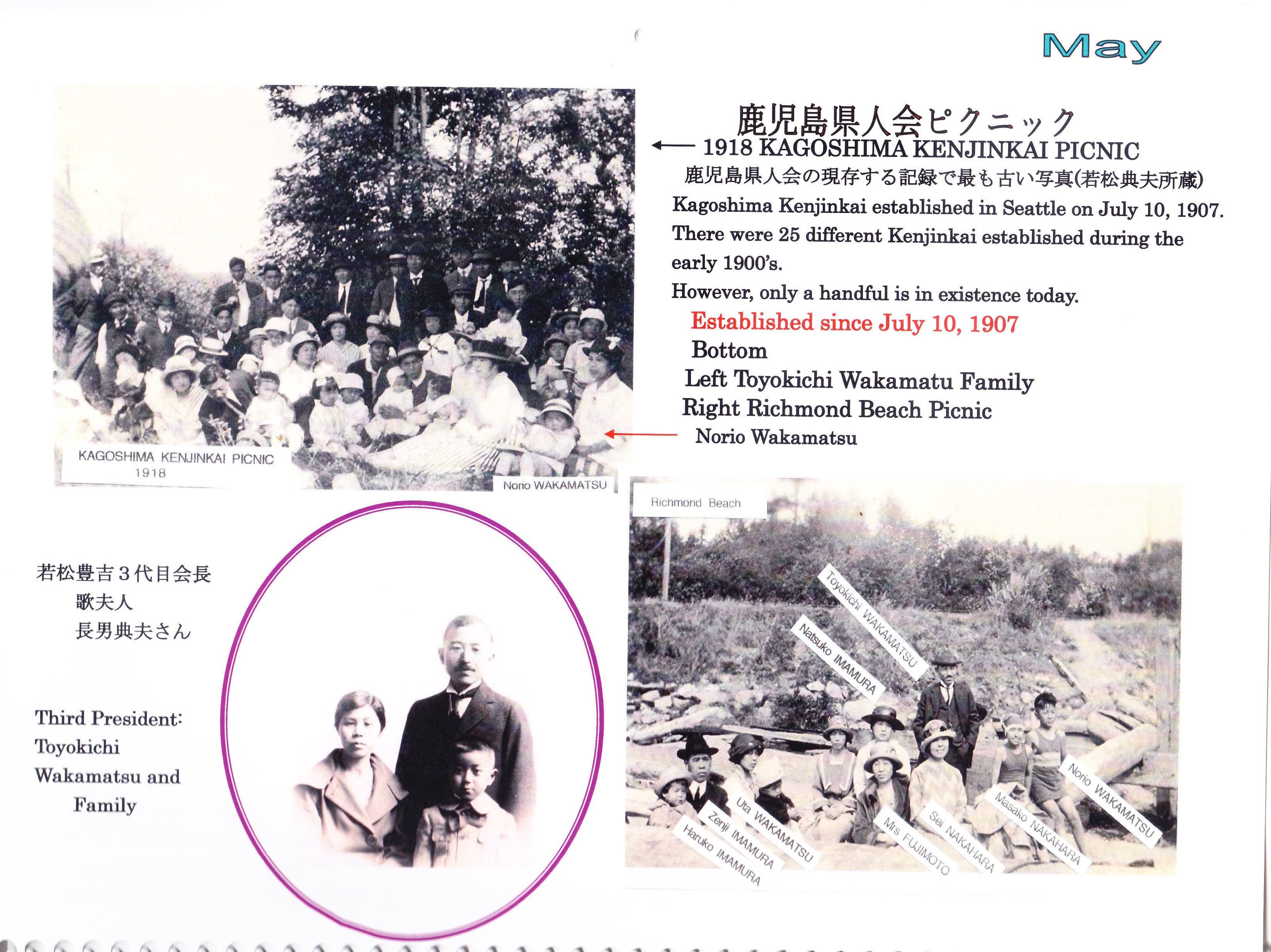 | 郵便にて100周年記念祝賀の各会員諸兄に配布した皆様方の鹿児島県知事及びワシントン州知事祝辞そして三州倶楽部のお二方が記された祝辞パンフレットと当時のカレンダー18か月分、此れには鬼籍と成られた移民一世や其のお子様方二世、現在では90歳以上多くは二世の方々もお亡くなりに成りましたが、此のカレンダーの暦の役目は終わっても過去に刻んだ一世、二世の足跡貴重な歴史は失われない!! 後を受け継ぐ会員の楽しい新年会やピクニックも一緒に記載され、次期世代へと受け継がれるであろう事を願ってやみません。 其れとUSBに鹿児島県人倶楽部の活動模様と小生の各コミュニティーでの活動を収録致しました。他県の農林水産物の展示会がシアトルでは頻繁に開催されて居りますのでご参考までに収録致して居りますのでご希望があれば、いつでもお分けいたします。 |