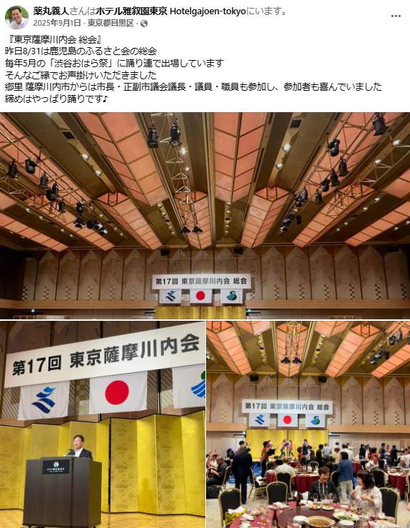 令和7年度 鹿児島玉龍同窓会総会ならびに懇親会 於 城山ホテル鹿児島 令和7年8月30日❨土❩ 鹿児島玉龍同窓会が主催し、関東・関西・福岡各同窓会の代表が年1度の開催に参集した。 |