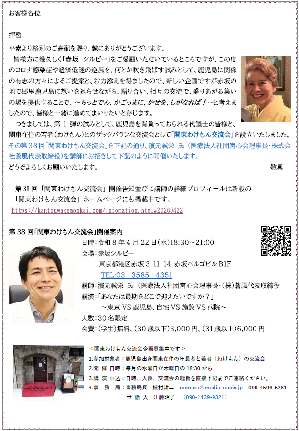 「彩加里」「はる風」代表の濱元です。