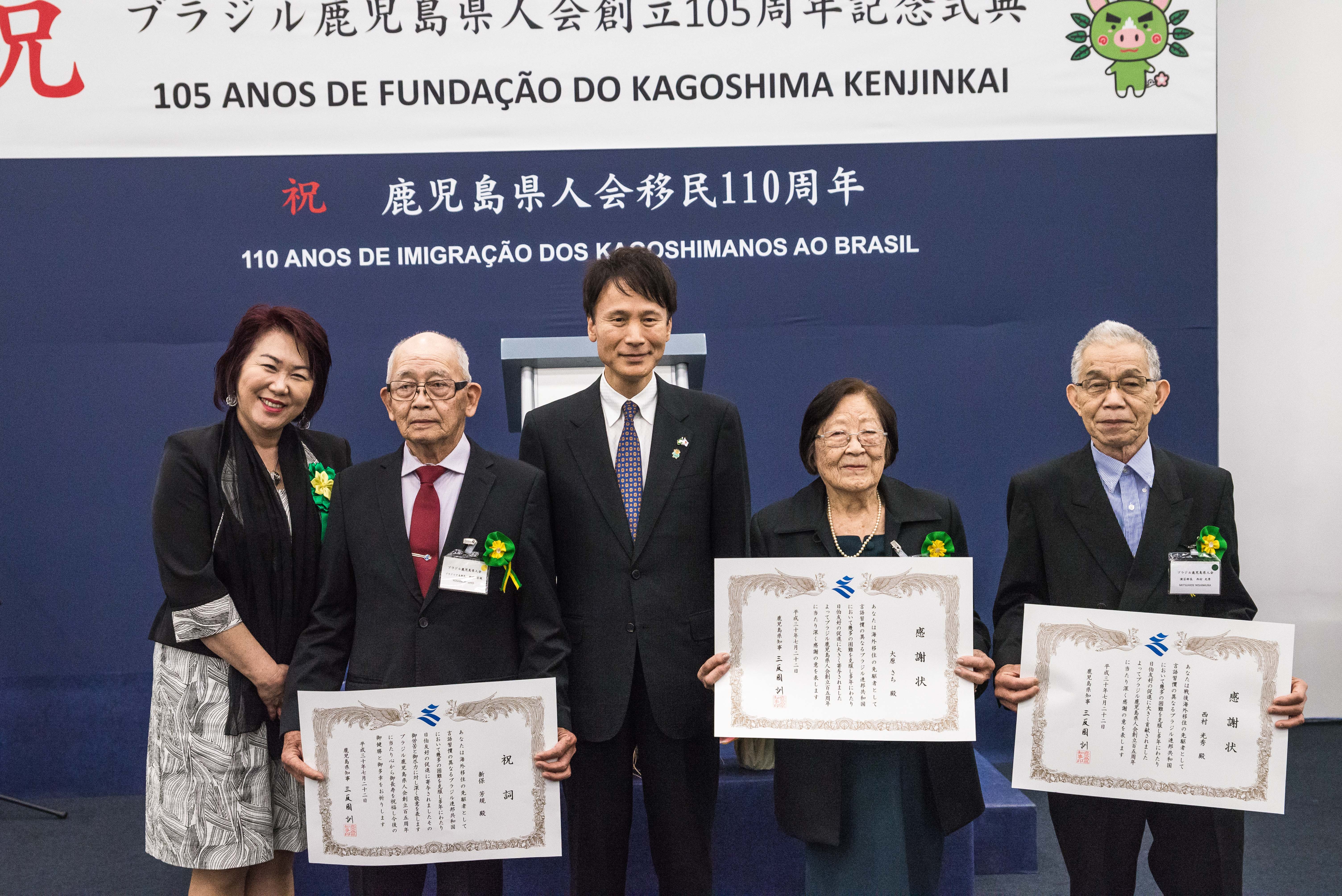 2018年7月22日には県人会創立105周年記念式典をサンパウロ・エキスポ・センターで開催。 パラグアイ鹿児島県人会、ペルー鹿児島県人会、サンパウロ州内外他鹿児島県からも、約320名の参加者出席し、盛大に祝うことができました。 |