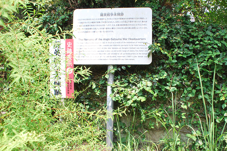 完全に観光気分である。にもかかわらず、薩摩藩は意外にも強硬な姿勢を見せる。賠償金の支払いを引き延ばし、犯人の引き渡しさえも消極的だ。 どうにか相手にきちんと考えさせようと、英国艦隊が船を逋脱したところ、薩摩藩がいきなり砲撃に踏み切った。驚いたのは、イギリス側のほうであったという。 なお当時久光は江戸におり、現地薩摩では海に近い鹿児島城がイギリス軍の大砲の射程圏内となるため、海から離れた千眼寺(現鹿児島市常盤町)に本陣が置かれ大久保利通らが指揮をとっていたといわれる。千眼寺は明治時代の廃仏毀釈により廃寺となる。(下写真本陣跡、クリックで拡大)