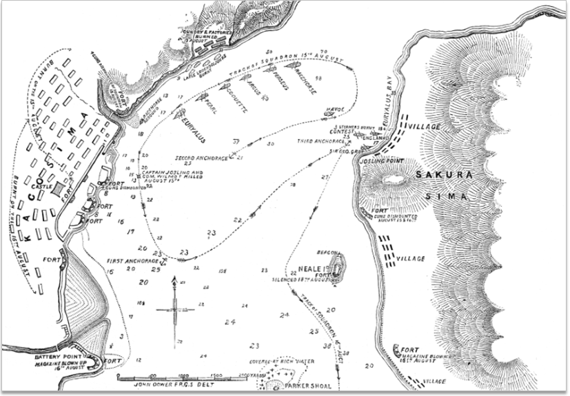 しかし薩摩藩は生麦事件での首謀者については引渡しを拒否したため、薩摩藩との交渉がこじれ翌年には英国艦隊が鹿児島湾へ向かい、軍艦からの薩摩藩への無差別な威嚇攻撃が「薩英戦争」の事態を引き起こす。 この時に後の英国留学生となる松木弘安、五代友厚が捕虜となる。 また薩英戦争では、英国艦隊が鹿児島湾の精密な測量を行なっていたことがその航海図から判明している。(下図、クリックで拡大)